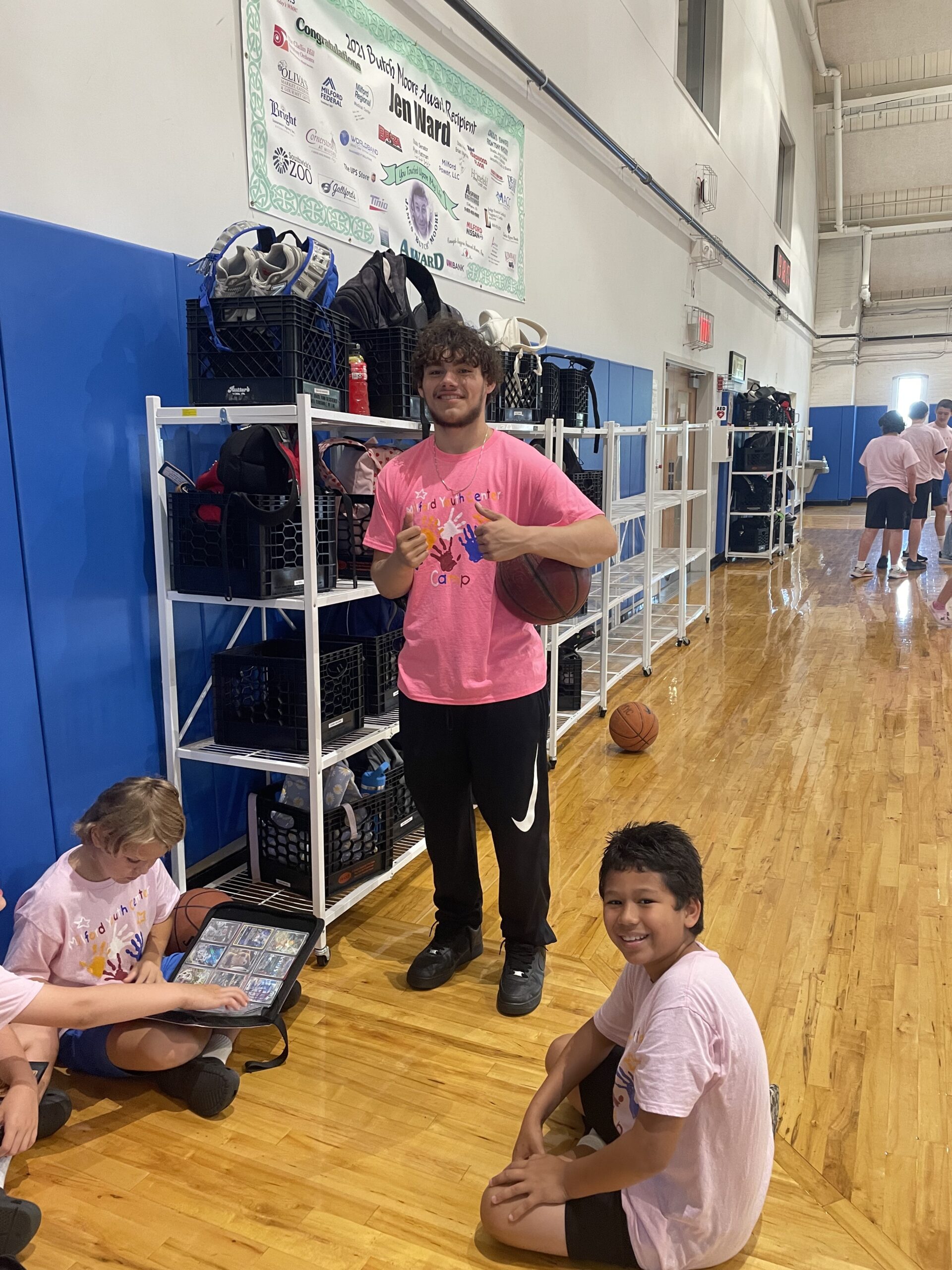 no matter what problems she was facing. As a kid, I felt a little different because of the circumstances my family was in, but as I got into the Youth Center all of that went away. It gave my mom a free place for me to go and stay out of trouble in, food to eat when there was nothing at my house, Christmas presents to help my mom for me and my siblings, to me doing basketball teams and the youth center holding the practices. Anything you can think of the Milford Youth Center has helped me with. Fast forward a couple of years towards the end of my 8th grade year Covid happened and it shut everything down. I gained a ton of weight and became very unhappy during that time but luckily with everything being modified and masks and distance rules the Youth Center was still able to be open. During that time there was a varsity basketball player that worked at the youth center, and I respected him so much because of what he did outside the Youth Center. He would have a conversation with me about weight loss and calorie deficits and everything I would need to know to help me lose weight and further my basketball career