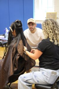 They set up shop in our gym, cut and styled hair, shaped eyebrows and massaged shoulders from 10:00am until 2:00pm, free of charge, out of the goodness of their hearts. Not only did they work tirelessly for the youth and families of Milford, but Emily also decided, without hesitation, to sponsor the Smashburger truck that was scheduled to be on site, as another special and free treat for the youth of Milford.