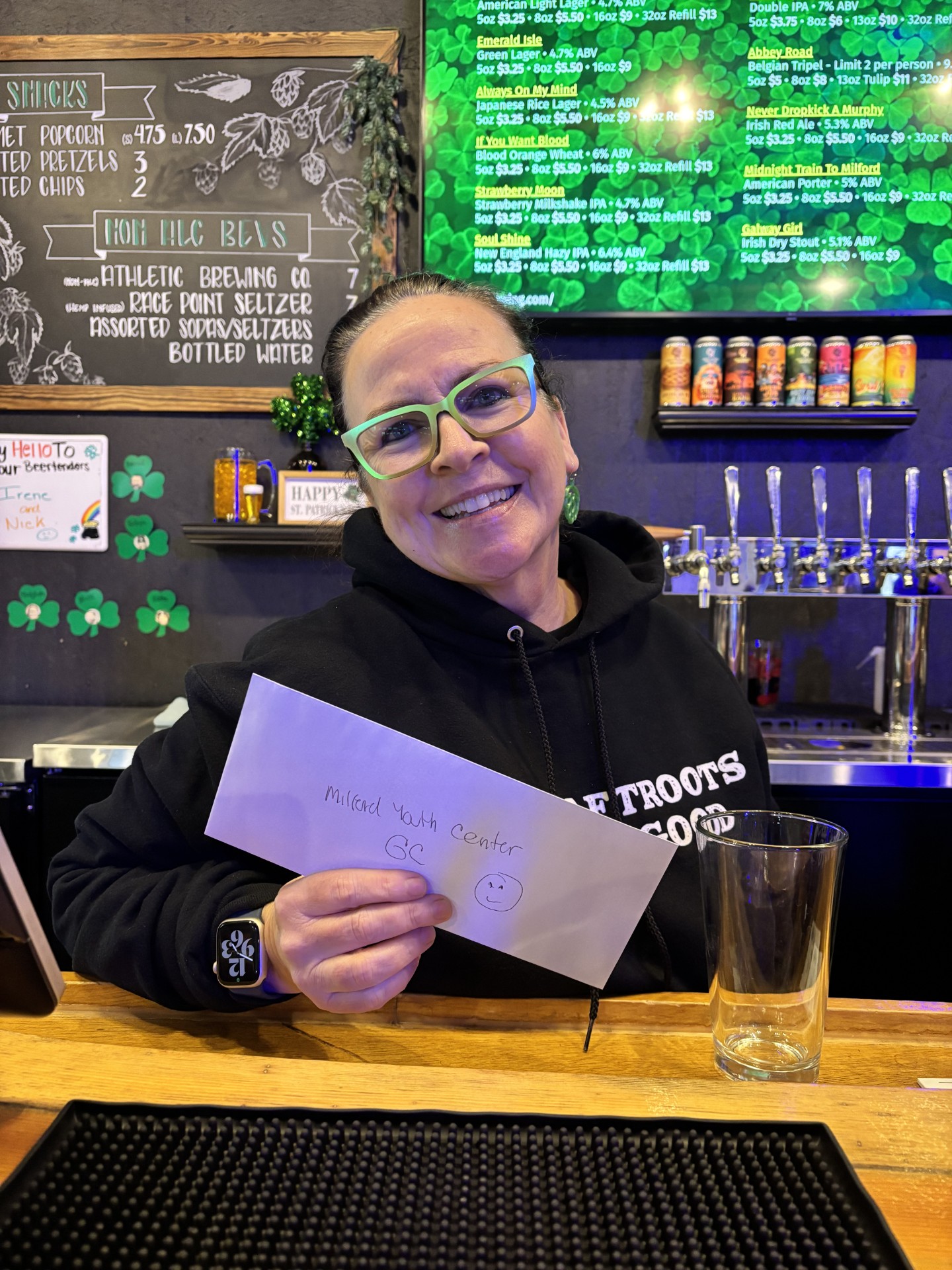 Cornerstone of Milford for coming to the Center and making leprechaun themed crafts with the youth; - Christine Daddario for donating a twinkle light backdrop for events;